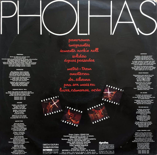 Hoje vamos como o Pholhas, grupo que fez muito sucesso nos anos 70. Lançaram vários discos, lps e compactos, sempre com músicas cantadas em inglês, Fizeram muito cover de bandas gringas, mas se destacaram mesmo foi na produção autoral, tendo seus discos sempre muito bem vendidos. Emplacaram hits que são lembrados até hoje. Foram dezenas de discos gravados, sempre buscando acompanhar o gosto padrão imposto pelas rádios. Um pop/rock que muitos consideravam meloso, mas que agradava em cheio o gosto popular (como esse nosso povo gosta de música estrangeira, hehe…) Ao longo do tempo a banda sofreu algumas alterações, tanto entre seus músicos como também no gênero. Gravaram até discoteca. Mas isso só serve para provar a versatilidade dos caras. Com a saída do tecladista Hélio Santisteban, entrou em seu lugar Marinho Testoni, do Casa das Máquinas, que deu a banda um outro rumo. Lançaram este disco, um álbum verdadeiramente rock, com muitas pitadas do progressivo e com letras totalmente em português. Ao contrário do que se esperava, o disco não vendeu muito, espantou a turma do mela cuecas e acabou ficando meio esquecido. Só quem gosta de rock se antenou para o disco que acabou se tornando a ‘obra cult’ dos Pholhas. O disco é, sem dúvida um empolgante trabalho do rock tupiniquim. Músicas boas, letras em português, enfim, o único da espécie na discografia da banda. Ao que consta, o Pholhas continua em atividade, com sua formação original, trazendo de volta um bom momento para os saudosistas.