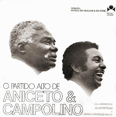 Este disco, lançado pela Fundação Estadual de Museus do Rio de Janeiro e MIS em 1977 foi o primeiro e talvez o único disco gravado por esses dois sambistas. A produção artística do álbum é de Elton Medeiros. Foi ele o responsável por trazer a tona e ao grande público os dois artistas e também despertar para um tipo de samba que há muito vinha sido esquecido (ou deturpado), o Partido Alto. Falar sobre este tipo de samba não é coisa que se possa fazer numa pequena resenha postal. Além do mais, a definição do que é realmente o Partido Alto é uma coisa em que não há consenso nem mesmo entre os estudiosos do assunto. O que posso dizer à respeito de Aniceto de Menezes e Nilton da Silva é o que está na contracapa e bem resumido. Eles fazem um tipo de samba com uma forte influência rural, um samba criado fora do morro urbano do Rio de Janeiro, onde os elementos temáticos são bem diferentes e até a instrumentação. Tem inclusive viola caipira! A dupla vem acompanhada pelo Grupo Chapéu de Palha e o quarteto vocal As Autênticas. Taí uma raridade que merece toda a nossa atenção. Não deixem de conferir…