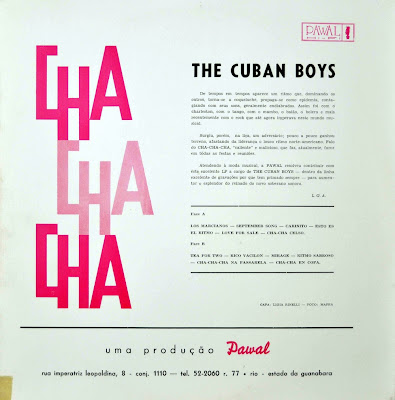 Mas como eu dizia, temos aqui The Cuban Boys, uma produção feita para atender a demanda do mercado da época. A onda era então o Cha Cha Cha e Pawal mais que depressa lança lá o seu conjunto. Realmente, mataram a pau, um p… disco para se ouvir de cabo a rabo. Desfilam aqui alguns clássicos desse gênero delicioso, assim como também composições do organista, aqui chamado pelo nome real de Celso Pereira. Imperdível!