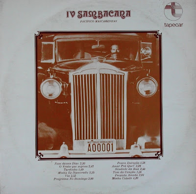 Tenho aqui mais um disco do Pacífico Mascarenhas e seu Sambacana. Na verdade, um disco do conjunto, sem a participação efetiva de Pacífico. O IV Sambacana foi um álbum lançado pela Top Tape em 1971 e reunia nomes como Toninho Horta, Novelli, Nivaldo Ornelas, Roberto e Suzana Tostes, entre outros… Wagner Tiso também participa do disco cuidando dos teclados e de todos os arranjos. Imperdível!