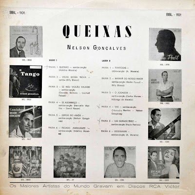 Boa noite a todos. Hoje eu não estou muito bem. Por isso serei breve. Escolhi um artista que talvez não dependa da minha apresentação, o que me poupa palavras e tempo. Segue aqui um Nelson Gonçalves ainda inédito nas ‘fontes’. “Queixas” álbum de carreira, um dos lançamentos de 1960. Vão ‘analisado’ aí, amanhã a gente tá de volta, ok?