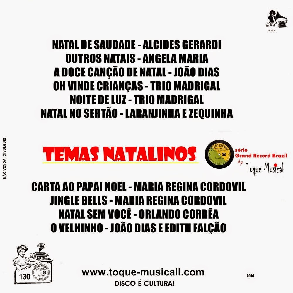 Então é Natal… Aquela ocasião em que a gente arma a árvore, o presépio, reúne a família, troca presentes, degusta a ceia… e, por que não, também canta canções típicas da festa máxima da cristandade. Assim sendo, o Grand Record Brazil, em sua edição de número 130, presenteia os amigos cultos, ocultos e associados do TM com mais esta compilação de músicas natalinas. São, no total, dez gravações.