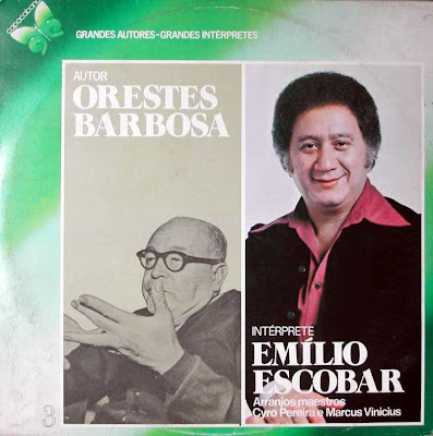 Bom, agora vamos ao disco do dia. Segue aqui um álbum da série Grandes Autores, Grandes Intérpretes, idealizada por Marcus Pereira para o selo Copacabana. Esta série é muito interessante porque busca resgatar antigos autores interpretados por cantores pouco conhecidos, mas de notável talento. Sem dúvida, uma grande sacada, uma coleção com autores de peso na voz de artistas que não circulam pela mídia. Neste álbum, o de número 3, temos o compositor Orestes Barbosa sendo apresentado ao lado dos parceiros Silvio Caldas e Francisco Alves em interpretações muito sóbrias do cantor da noite, Emílio Escobar. Os arranjos e regências são dos maestros Cyro Pereira e Marcus Vinicius. Participam também do disco músicos de calibre como Heraldo do Monte, Amilson Godoy, Dirceu Medeiros e muitos outros. O disco tem tudo de bom, só peca na prensagem. A qualidade do plástico vinil também não é lá grandes coisas, o que compromete a qualidade do som. Somado ao tempo em que ele ficou guardado juntando poeira, mesmo estando aparentemente novo, o resultado deixa um pouco a desejar. Contudo, vale a pena conferir o toque musical…