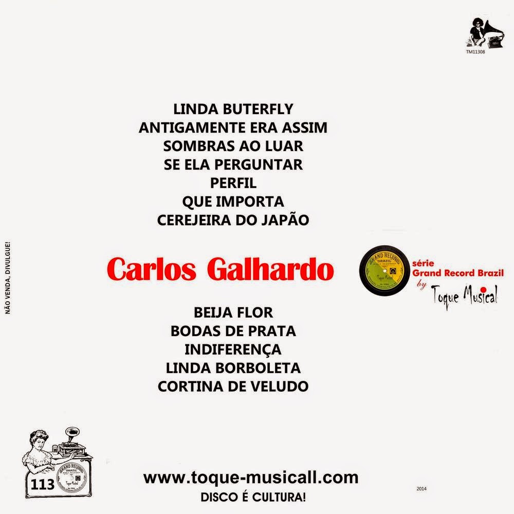E estamos de volta com o Grand Record Brazil, em sua edição de número 114, apresentando a segunda parte da retrospectiva dedicada a Carlos Galhardo (1913-1985), “o Cantor que dispensa adjetivos”. São mais doze faixas preciosas e imprescindíveis para todos os que apreciam a arte de cantar no que ela tem de mais belo e expressivo. Abrindo nossa seleção desta semana, Galhardo apresenta “Ai, amor”, samba de dois Robertos, Martins e Roberti, gravado na Victor em 25 de agosto de 1939 e lançado em novembro do mesmo ano sob n.o 34508-B, matriz 33153. Roberto Martins também assina, agora com Ari Monteiro, a faixa seguinte, “Vinte e três de abril”, data consagrada a São Jorge, e inspiradora deste samba que Galhardo imortalizou na já então RCA Victor em 27 de fevereiro de 1948, com lançamento em abril seguinte com o n.o 80-0579-A, matriz S-078829. Do carnaval de 1960 é a marchinha “Cachopa”, de Augusta de Oliveira e Madalena Correia, gravada em 14 de setembro de 59 e lançada ainda em dezembro sob n.o 80-2148-B, matriz 13-K2PB-0759, e no LP coletivo “Carnaval RCA Victor”, isso já numa época, sempre é bom frisar, de transição do 78 rpm para o vinil. Recuando no tempo, temos em seguida o samba “Cantar pra não chorar”, de autoria do lendário Paulo da Portela em parceria com um dos pioneiros do gênero, Heitor dos Prazeres, que Galhardo grava na então Victor em 15 de dezembro de 1937, com lançamento bem em cima do carnaval de 38, em fevereiro, sob n.o 34278-B,matriz 80634. Mostrando que foi talvez o cantor do Sul do Brasil mais fiel ao frevo,gênero com o qual estreou em disco, Galhardo apresenta “O frevo é assim”. De autoria de Nélson Ferreira, um craque do gênero, em parceria com o também pernambucano Nestor de Holanda, este frevo-canção do carnaval recifense de 1946 foi gravado na marca do cachorrinho Nipper em 23 de outubro de 45, sendo lançado ainda em dezembro com o número 80-0353-A,matriz S-078302, com acompanhamento da orquestra do maestro paulista Aristides Zaccarias, que também animava os bailes de carnaval pernambucanos. A faixa seguinte, aliás, é do primeiríssimo disco de Carlos Galhardo, o Victor 33625. É a “marcha pernambucana” (como então era chamado o frevo-canção) “Que é que há?”, de Nélson Ferreira sem parceiro., lado B desse histórico 78 do cantor, gravado em 26 de janeiro de 1933 e lançado em março seguinte, matriz 65659. Da primeira safra de Galhardo na Odeon (onde gravaria seus derradeiros discos, nos anos 1970) é a marchinha “Serpente do amor”, do carnaval de 1937. De autoria de Benedito Lacerda e Aldo Cabral, foi gravada na “marca do templo” em 31 de outubro de 36, com lançamento ainda em dezembro sob n.o 11421-A, matriz 5433. Retornando à Victor, temos a valsa “Mares da China”, da profícua parceria João de Barro (Braguinha)-Alberto Ribeiro, que Galhardo imortaliza em 20 de junho de 1938, com lançamento em outubro do mesmo não,sob número 34365-A, matriz 80831. “Deus no céu, ela na terra”, samba de Wilson Batista e Marino Pinto, é uma daquelas manifestações à chamada mulher ideal, então comuns. Galhardoo imortalizou na marca do cachorrinho Nipper em 14 de junho de 1940, devidamente acompanhado de regional, com destaque para a expressiva clarineta do mestre Luiz Americano, indo para as lojas em agosto seguinte, sob n.o 34643-B,matriz 33443. “Flor do céu”, de autoria creditada a Rômulo Paes e Henrique de Almeida, é na verdade adaptação, em ritmo de fox, de uma modinha de cunho tradicional, “É a ti, flor do céu”, regravada até mesmo pelo ex-presidente Juscelino Kubitschek de Oliveira. Esta versão foi gravada por Galhardo na já então RCA Victor em 8 de junho de 1956, sendo lançada em agosto seguinte com o número 80-1654-A, matriz BE6VB-1182. “Cármen”, valsa de Paulo Barbosa e Cristóvão de Alencar, o “amigo velho”, é o lado B do disco de “Cerejeira do Japão” (apresentada em nosso volume anterior), o Victor 34659, gravado em 16 de julho de1940 e lançado em outubro do mesmo ano, matriz 33473. Também de Paulo Barbosa, agora em parceria com Francisco Célio, é a valsa que encerra nossa seleção desta semana, “Quero a teus pés te adorar”, outra preciosidade da rica safra de Galhardo na Victor, gravada em 27 de janeiro de 1940 e lançada em março do mesmo ano, disco 34585-B, matriz 33320. Na próxima semana, encerraremos esta retrospectiva dedicada a Carlos Galhardo, um cantor que, de fato, dispensava qualquer adjetivo. Até lá!