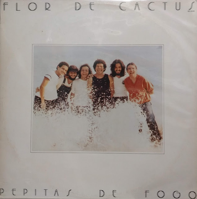 Boa noite, amigos cultos e ocultos! Para a nossa ‘distração’, eu tenho hoje um disco bem interessante, “Pepitas de Fogo, do conjunto Flor de Cactus, um grupo de Natal, no Rio Grande do Norte, que veio a se despontar no cenário nacional, graças ao seu excelente time de músicos, nomes como o baixista Chico Guedes, que tocava com Zé Ramalho, ou ainda o percussionista Mingo Araújo que chegou a acompanhar a banda de Paul Simon. O trabalho que temos aqui é de 81, lançado pela RCA. Um disco bem bacana, que eu mesmo só estou tendo o prazer de conhecer agora. Só conhecia a faixa ‘Mistura’, que classificada no Festival da Globo, desse ano de 1981. O Flor de Cactus gravou uns três discos, creio eu. Não há na rede muita informação fácil sobre a banda. Como estou sempre sem tempo, me limito a essas informações. Confiram, pois realmente vale a pena 😉