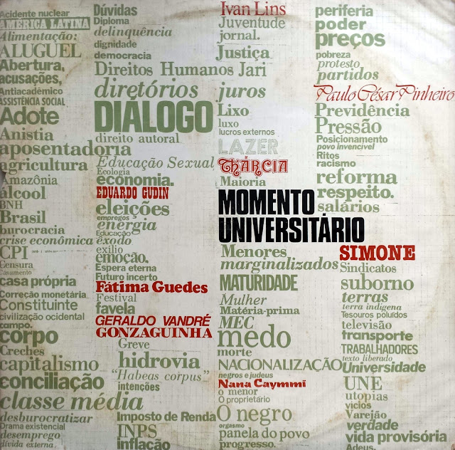 Olá amigos cultos e ocultos! Em tempos de incertezas políticas é sempre bom a gente lembrar fatos que muito se assemelham aos atuais. Também, relembrando o que era um momento universitário, quanto essa turma era mais engajada. Se fossem fazer hoje um disco do momento universitário, com certeza, seria um desastre musical, cheio de funk, rap e sertanejo, claro.