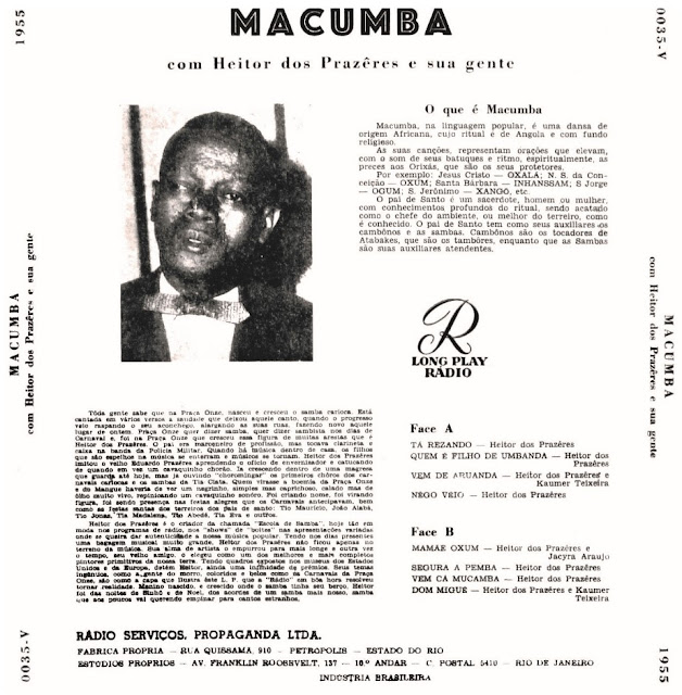 Em homenagem ao meu amigo Claudinei, grande pesquisador da MPB e também em virtude do seu atual trabalho, estou postando este disco do fabuloso Heitor do Prazeres. Com certeza este álbum servirá de complemento para seus estudos sobre este compositor carioca.