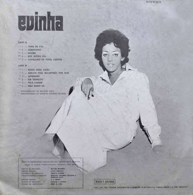 Temos aqui a cantora Evinha em seu terceiro lp. Como todos devem saber, Evinha iniciou a carreira ainda criança, cantando ao lado dos irmãos Mário e Regina, com que formava o Trio Esperança. Em 68 ela partiu para uma vitoriosa carreira solo, sempre fazendo muito sucesso. Neste lp “Cartão Postal” temos vários destaques. Músicas como “Que bandeira”, de Marcos Valle, Paulo Sérgio Valle e Mariozinho Rocha; “Feira Moderna”, de Beto Guedes e Fernando Brant; “Cartão Postal”, de Renato Correia e Guarabyra e vai por aí… Um disquinho realmente bom, para se ouvir hoje ou em qualquer outro dia 😉