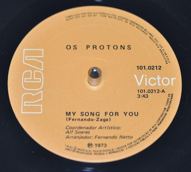 Olá amigos cultos e ocultos! Sexta feira, um baita calor e eu com uma pausa de uma hora, esperando os amigos para logo deliciarmos algumas loiras (quentes e geladas, hehehe…) Mas as vezes, uma hora passa tão depressa que, no aqui, só vai dar mesmo para postar um compacto. E olha que foi escolhido apenas porque já estava tudo engatilhado. Vamos aqui com disquinho, que pela capa nos faz imaginar ser uma daquelas super bandas de rock dos anos 70. Mas, sem dúvida, tem mais aparência do que propriamente rock’n’roll. Temos aqui Os Protons, um conjunto surgido no inícios dos anos 70. Segundo contam, foram descobertos por Eduardo Araújo e chegaram a participar do seu álbum homônimo de 1973. Este compacto, talvez seja o resultado daquelas horas de sobra em estúdio. Infelizmente, pesquisando rapidamente, não há na rede maiores informações sobre Os Protons, nem mesmo consegui identificar quem eram os participantes do grupo. Mas, enfim, o que vale mesmo aqui é o recheio. Corram logo e peguem o seu, pois o tempo é curto, os links não voltam a ser renovados.