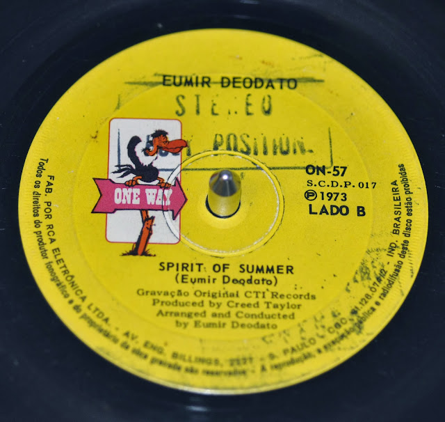 Segue aqui este Eumir Deodato trazendo seu maior sucesso, a adaptação do tema clássico de Strauss “Also Sprach Zarathustra”. Esta versão de Deodato parece ter ficado mais famosa que a original e foi lançada em seu disco de estréia na CTI Records, o “Prelude”, de 72. Para mim, os melhores discos do Deodato foram os dessa época, lançados pelo produtor Creed Taylor. “Assim falava Zarathustra” ou “Also sprach Zarathustra – 2001” fez sucesso mundial e até ganhou o Grammy de melhor música instrumental pop do ano. A versão original que está no lp é de uns nove minutos, mas para o compacto ela foi reduzida, garantido assim uma maior popularidade. Taí uma prova da importância do disco compacto. Era ele quem fazia a representação, ou apresentação de um novo projeto musical. Lançavam o compacto, se fizesse sucesso o lp era garantido! Neste compacto temos “também, “Spirit of Summer, belíssima composição do próprio artista, que faz o contrapeso bem na medida. Geralmente, compactos sempre trazem ‘aquela’, que é o sucesso e a outra que é apenas a outra. Mas aqui ela não é mais uma.