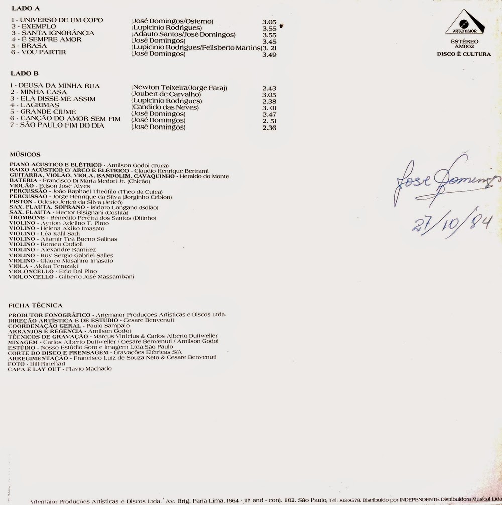 Ao que parece, discos do Zé Domingos nunca chegaram a ser divulgado em blogs musicais. Nunca vi um. Este está sendo o primeiro e o Toque Musical  se sente muito honrado em dar o primeiro toque. Álbum bacana, produção independente que as grandes gravadoras não souberam dar o devido valor. Um grande artista. Vale a pena conhecer!