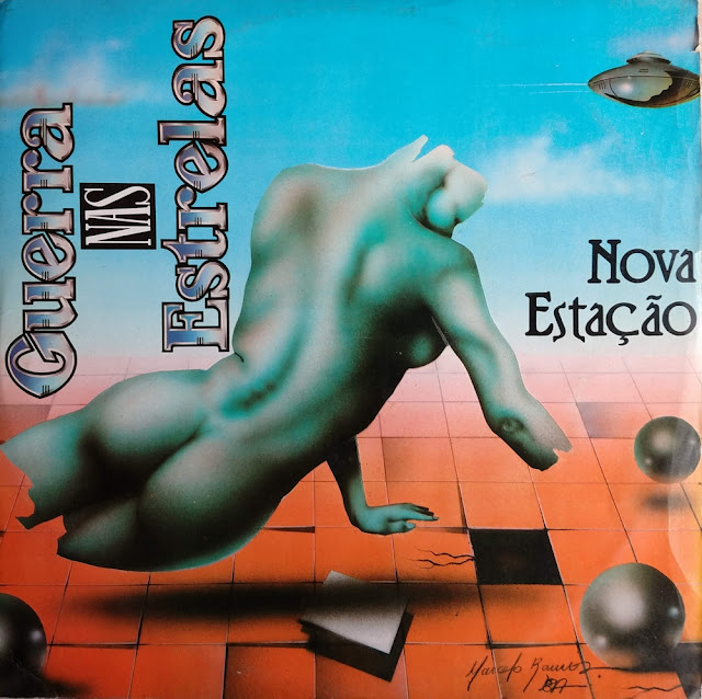 Boa noite, amigos cultos e ocultos! Trago hoje para vocês o que poderia ser um re-postagem. Há pouco mais de uns três anos eu postei aqui o disco Momentos Mágicos, do grupo mineiro Nova Estação. De quebra, também apresentei uma versão deste disco, Guerra Nas Estrelas. Naquela época eu não tinha o disco, apenas as músicas e nem o líder da banda, o doutor Carlos Eduardo, meu acupunturista, tinha um exemplar para me emprestar. Acabei dando a ele o Momentos Mágicos e prometi que se um dia encontrasse o Guerra Nas Estrelas também o presentearia. Eis que ontem, na loja de discos de um amigo, encontro o tal disquinho. Paguei caro por ele, mas infelizmente, ao chegar em casa percebi que o lp estava quebrado. Uma pena, tive que devolver. Mesmo assim, antes de entregar, consegui com muito cuidado digitalizá-lo e assim, pelo menos, publicá-lo dentro dos conformes 🙂 Taí, mais um disquinho bacana, produção independente e mais arrojada. Um trabalho totalmente autoral. O Nova Estação foi um grupo essencialmente mineiro que infelizmente, embora tenham lançado dois discos, ficou só na lembrança. E que fique também na história da musica mineira.