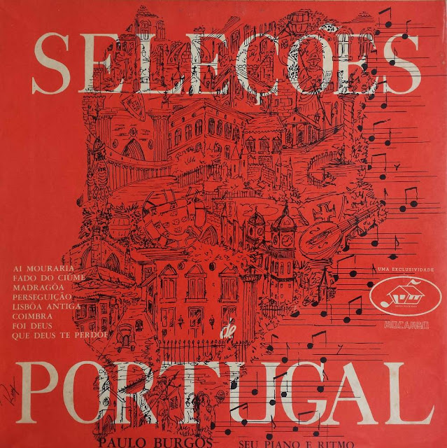 Olá amigos cultos e ocultos! Dando sequencia a série dos 10 polegadas, eu trago hoje um disco dedicado aqueles que são fãs da música portuguesa. Temos aqui uma seleção com algumas das mais conhecidas música portuguesas interpretadas pelo pianista pernambucano Paulo Burgos em disco lançado pelo selo Mocambo, da fábrica de discos Rozenblit, em 1957. O lp é de faixa contínua, ou seja, não há separação entre as música. Feito assim especialmente para dançar, sem pausa, pelo menos a cada lado. Não vou estender na apresentação, pois o verso da capa já nos traz toda a informação complementar. Confiram já…