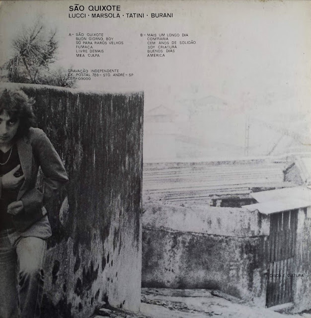 Apresentando, esta é a banda paulista São Quixote, originária de outra, o Moto Perpétuo, banda de onde surgiu o cantor e compositor Guilherme Arantes. O Moto Perpétuo era uma banda com pitadas de rock progressivo, surgida em 1973, da qual faziam parte além de Guilherme, os músicos Egydio Conde, Diogenes Burani, Gerson Tatini e Cláudio Lucci. Guilherme Arantes partiu para uma muito boa carreira solo. Egydio seguiu para o Som Nosso de Cada Dia. Porém, no início da década de 80, três membros da banda, Claudio Lucci, Gerson Tatini e Diógenes Burani voltaram a se reunir, juntamente com a violonista e cantora Mônica Marsola para gravar este lp, o São Quixote, que para muitos é também considerado um disco do Moto Perpétuo. Até porque, neste trabalho há ainda a participação especial de Guilherme Arantes, presente em cinco faixas do disco. Em resumo, trata-se de um disco na mesma linha do primeiro e único do Moto Perpétuo. Uma produção independente, limitada e hoje ainda mais rara. Para mim, musicalmente perfeito. Compartilho com os amigos e espero que gostem 😉