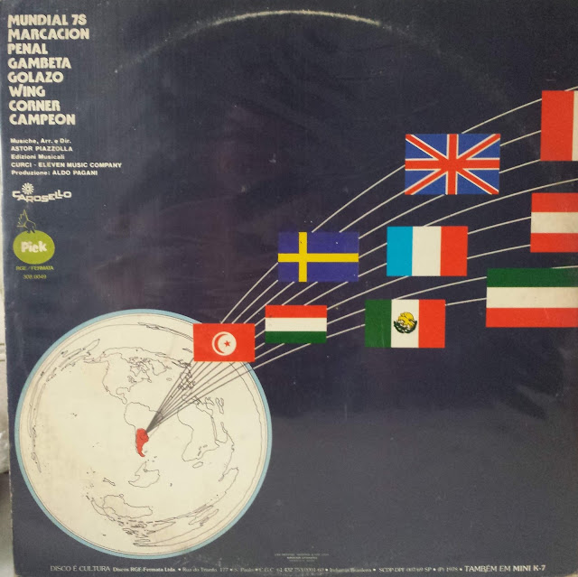 Como por certo já sabem nossos amigos, cultos e associados, o Toque Musical completa, em 30 de julho próximo, dez anos de existência. Uma longa e expressiva trajetória na qual, inúmeros tesouros raros da era do vinil, principalmente de música brasileira, foram resgatados, para alegria e satisfação de muitos colecionadores. E decidimos comemorar apresentando vários álbuns de música popular latino-americana, principalmente de países da América do Sul, o continente em que está o nosso Brasil. Para começar, apresentamos um disco gravado pelo notável bandoneonista Astor Piazzolla, também considerado o mais importante compositor de tangos da segunda metade do século XX. Foi no balneário argentino de Mar del Plata que Astor Pantaleón Piazzolla veio ao mundo, no dia 11 de março de 1921, filho dos italianos Vicente Piazzolla e Assunta Manetti. Aos quatro anos, mudou-se com a família para Nova York, EUA, em busca de melhores condições de vida. Em seu período norte-americano, tornou-se fluente em espanhol, inglês, italiano e francês, e começou a se interessar pela música. Em 1929, ganhou de seu pai o primeiro bandoneón, e, em 1933, começou a estudar piano com o húngaro Bela Wilde, discípulo de Sergei Rachmaninoff.  Foi em Nova York que o jovem Astor conheceu nada mais nada menos que Carlos Gardel, quando esteve na cidade para filmar “El dia que me quieras”, e atuou nessa película como um garoto entregador de jornais. Quando jovem, Astor tocou e fez orquestrações para o bandoneonista, compositor e maestro Aníbal Troillo, além de estudar teoria harmônica e contraponto tradicional com a compositora, educadora e maestrina Nadia Boulanger.  Ao regressar de Nova York, Piazzolla já mostrava forte influência do jazz em sua música, estabelecendo então uma nova linguagem, seguida até hoje.  Ironicamente, quando começou a fazer inovações no ritmo, no timbre e na harmonia do tango, foi muito criticado por antigos tocadores do gênero, mais ortodoxos, que bradavam que sua música não era tango de fato. A eles, Piazzolla respondia que era música contemporânea de Buenos Aires, que seus seguidores e apreciadores  consideravam de fato a cara da metrópole argentina.  Deixou uma vasta e prolífica discografia, tendo gravado com nomes do porte de Gary Burton, Gerry Mulligan, o violinista Fernando Suarez Paz e o nosso mestre Tom Jobim. Entre seus mais destacados parceiros na Argentina, estão a cantora Amelita Baltar, o poeta Horacio Ferrer e o escritor Jorge Luís Borges.  “Balada para um loco”, “Adiós, Nonino” (que fez quando seu pai faleceu, em 1959, e tem mais de 170 gravações) e “Libertango”, esta última constantemente executada por diversas orquestras em todo o mundo.  Em 1973, algumas de suas composições foram aproveitadas no filme “Toda nudez será castigada”, de Arnaldo Jabor, o que valeu a Piazzolla uma menção especial do júri, como melhor trilha, no Festival de Gramado daquele ano. Seu currículo, aliás, registra também apresentações públicas no Brasil, EUA, Itália, França e, claro, na Argentina. Astor Piazzolla faleceu em sua Argentina natal, mais precisamente em Buenos Aires, em 4 de julho de 1992, aos 71 anos. Seus restos mortais estão sepultados no cemitério Jardin de Paz, em Pilar, ao norte da província de Buenos Aires, e, desde 2008, o Aeroporto Internacional de Mar del Plata, sua cidade natal, possui o nome de Astor Piazzolla. De sua vastíssima discografia, o TM foi buscar “Mundial 78”, gravado na marca italiana Carosello em 1978, por ocasião da Copa do Mundo de Futebol realizada na Argentina, e editado no Brasil pela RGE-Fermata, com o selo Pick. Por sinal vencida pela representação da casa, depois de uma polêmica semifinal em que goleou o Peru por seis a zero (os jogadores peruanos teriam recebido suborno para perder a partida e, assim, tirar do jogo final o Brasil, que acabou com o mesmo numero de pontos da Argentina mas ficou inferiorizado no saldo de gols, tendo de se contentar com o terceiro lugar, obtido em partida contra a Itália). Polêmicas à parte, o fato é que este disco (que trazia de brinde até mesmo a tabela da Copa 78)  é muito bem produzido, confirmando a genialidade de mestre Piazzolla. São oito faixas, mostrando diferentes situações do futebol, como a faixa-título e de abertura, “Golazo” “Marcación”, “Córner” (o mesmo que escanteio) e, finalmente, “Campeón”. Um grande álbum que seguramente é um dos pontos altos da discografia de Astor Piazzolla, para sempre um ícone do tango e da música popular mundial. É só conferir…