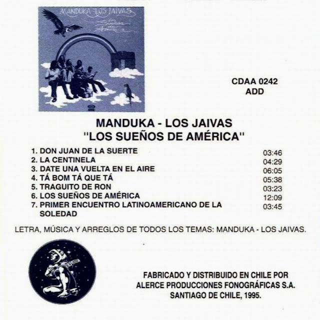 Temos então,”Los sueños de America”, disco gravado na Argentina, pelo músico brasileiro, Manduka, ao lado do grupo chileno Los Jaivas. Este disco nunca chegou a ser lançado no Brasil, porém, através de outros blogs, da internet e outras fontes, o disco circulou bastante, tempos atrás. Em 1995 ele foi relançado no Chile pela Alerce Producciones Fongráficas, em versão cd.