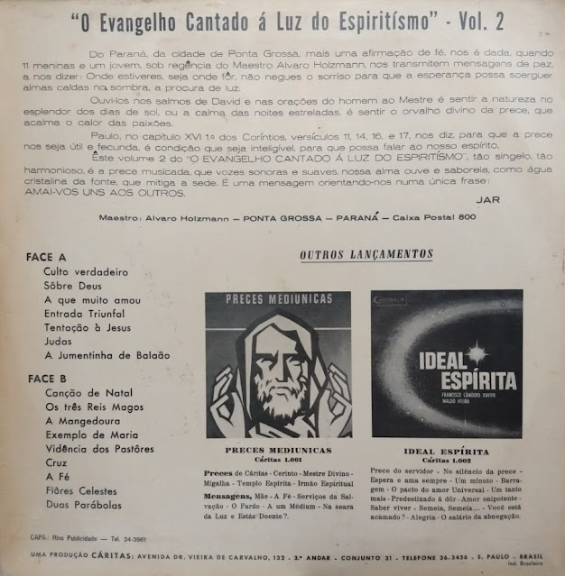 Disco do selo Caritas, provavelmente lançado no final dos anos 60. Replico aqui um trecho do texto da contracapa para fechar o toque: “A presente gravação foi realizada com a colaboração da Tenda Virgem Maria, de Belo Horizonte, dirigida pelo zelador de Santo, Dorico, nome por demais conhecido no rádio mineiro desde 1946 e muito mais ainda na Umbanda, onde pontifica há longos anos, filho de Santo que é, de Tancredo da Silva Pinto, Dig Presidente da Confederação Umbandista do Brasil.” Confiram no GTM…