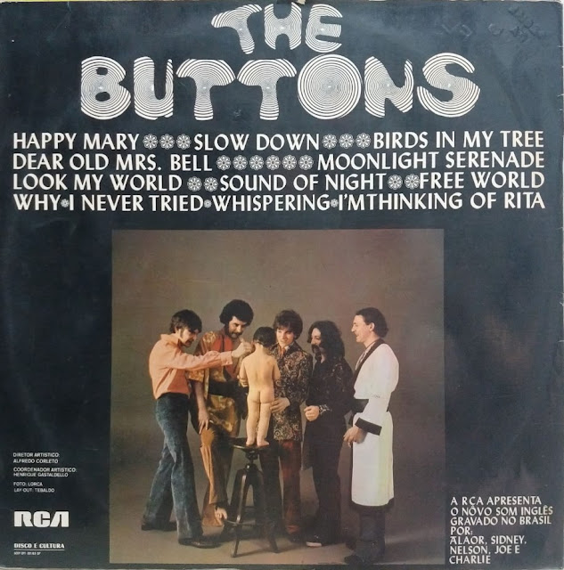 Boa noite, meus queridos amigos cultos e ocultos! Aqui vamos nós com mais um disco… E para hoje eu lhes apresento, The Buttons, um daqueles grupos de ‘rock’, do início dos anos 70 que cantavam em inglês. Quem não se lembra daquela febre que levou vários artistas nacionais a adotarem nomes estrangeiros e cantar em inglês? Foram muitos os nomes e desses chegamos a postar vários discos por aqui, no Toque Musical. The Buttons, antes de gravarem este disco eram “Os Botões”, um grupo que tocava em bailes e clubes paulistas. Em 1970 eles foram recrutados pela RCA para gravarem este disco, uma proposta diferente da gravadora que como outras estavam lançando seus artistas internacionais ‘Made in Brazil’. A primeira metade dos anos 70 foi assim, cheio de Morris Albert, Pholhas, Light Reflections, Christian, Dave Maclean… Aliás, na sequencia das produções da RCA, a turma do The Buttons acabou virando Dave Maclean, em 73. Dave Maclean aparece inicialmente e aparentemente como uma banda, depois se incorpora como um cantor, seguindo assim como um artista com diversos sucessos. The Buttons é parte desse momento e para muitos, hoje é visto como uma banda de rock, disco raro e bem cotado no Discogs e Mercado Livre. Pessoalmente, acho este disco bem interessante. Convido aqueles que ainda não conhecem para uma audição. No GTM está completo, chega lá…
