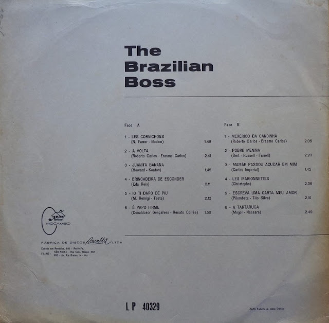 Bom dia a todos, amigos cultos e ocultos! Vez por outra, além dos tradicionais ‘arquivos de gaveta’ e colaborações de todo tipo, tenho apresentado aqui a herança do Sintonia Musikal, do amigo Chico. Infelizmente o blog dele fechou as portas e acabou deixando muita gente ‘a ver navios’. O Toque Musical, na sua incansável existência tem buscado resgatar o que por lá já foi publicado. Inclusive, porque muitos dos discos que foram postados no SM são muitas vezes os mesmos discos do acervo TM. Assim, considerando a qualidade dos arquivos do SM e também para facilitar a nossa labuta na hora da digitalização, preferimos apenas usar os arquivos que já estão prontos. Eventualmente fazemos algumas correções, trocamos o áudio ou mesmo as imagens. O importante, como já dizia Paulo César Pinheiro, é que a nossa emoção sobreviva. Então, aqui temos este delicioso instrumental, a la Jovem Guarda, The Brazilian Boss, lançado em 1966 pelo selo Mocambo. Por certo, trata-se de um conjunto de ocasião, ou seja um grupo musical criado para dar corpo ao disco e seu repertório. Embora, em 1968 tenha sido lançado um outro disco do The Brazilian Boss, não se sabe ao certo quem eram os seus músicos. Eu imagino que por ser um disco da Mocambo, talvez os artistas sejam do ‘cast’ da gravadora, músicos de estúdio, que geralmente não são citados nas ficha técnicas. Independente disso, temos aqui um disquinho curioso e que muito irá agradar aos amantes da Jovem Guarda. Confiram…