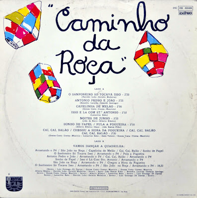 Olá amigos cultos, ocultos e associados! Eu ontem informei a vocês que estaria adiantando as minhas férias, devido ao tombo que levei. Tive uma fratura no joelho e o médico me mandou ficar de repouso absoluto. Nem precisava, pois a dor está de amargar. Agradeço desde já à todos as mensagens de solidariedade recebidas. Isso faz um bem que vocês não imaginam. Talvez por isso mesmo foi que eu resolvi voltar, pelo menos hoje, e fazer uma postagem que neste mês não poderia faltar. Todos os anos eu sempre postei um ou mais discos relacionados às festividades juninas. Seria uma grande falta se eu tivesse deixado passar em branco, não é mesmo? Assim sendo, está aqui o meu representante, “Caminho da Roça – Quadrilha Marcada” foi um lp lançado pela Odeon, através de seu selo Imperial em 1978. No álbum não consta créditos para os intérpretes, o que me faz pensar que sejam essas gravações mais antigas, ‘fonogramas de gaveta’ prontos para serem utilizados comercialmente nessas ocasiões. O que vale mesmo é o repertório, com músicas tradicionais e bastante conhecidas do público. O lado B do disco é feito mesmo para a quadrilha dançar, sem pausa e marcadinha, como manda o figurino 🙂