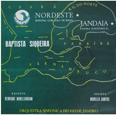 Eu fiquei meio na dúvida se deveria ou não postar hoje este raro e belo lp. Trata-se de um álbum lançado pelo obscuro selo Uirapuru, dedicado à música brasileira de cunho erudito e também folclórico. Este selo lançou outros diversos discos e a partir dos anos 70 passou a ser uma espécie de subsidiária da CBS, produzindo discos de música folclórica e sertaneja. Temos assim este lp, um disco realmente raro, que infelizmente eu não localizei a data, mas eu suponho que seja dos anos 60. Nos traz um pouco da obra de Baptista Siqueira, um nome pouco lembrado (ou sou eu o esquecido?).