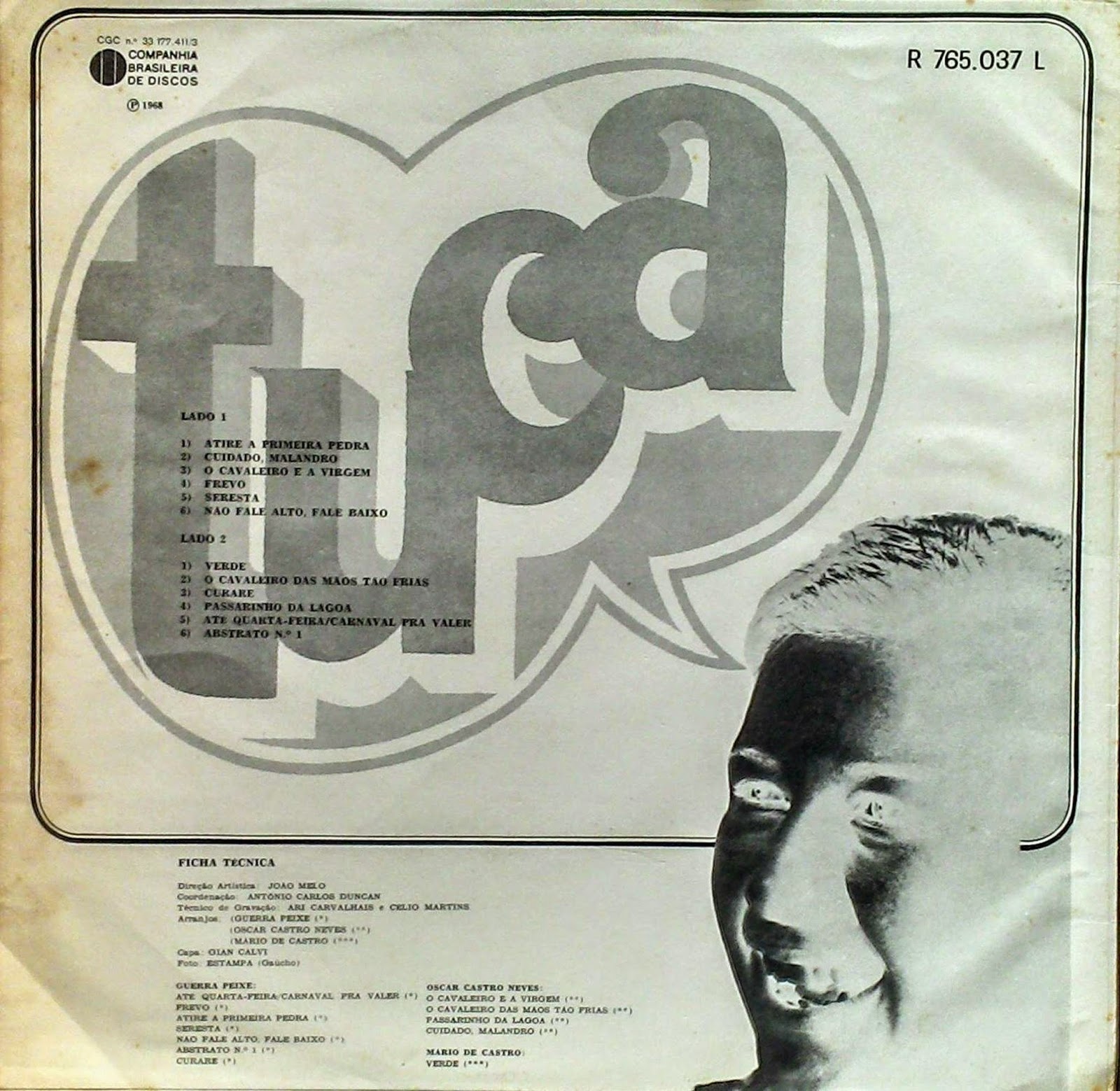 O lp que eu aqui apresento não é nenhuma novidade. Trata-se de um disco bem divulgado em tudo quanto é blog, tipo o Toque Musical. Todos porém cometem o mesmo erro. Rotulam este como se chamasse “Eu, Tuca” e para alguns é considerando o primeiro disco. Mas a verdade é que o primeiro lp, lançado pelo selo Chantecler é de 1966 e se chama “Meu eu”. O problema é que alguém copiou a informação do site Dicionário da MPB (do Cravo Albim) e essa, por sua vez foi replicada como a verdade. Daí é que vem os enganos… Somente em 68 ela gravaria este, seu segundo lp, sem título, apenas Tuca, lançado pela Philips, com arranjos de Guerra Peixe, Oscar Castro Neves e Mário de Castro. No repertório temos composições próprias, parcerias e belas interpretações de músicas de outros autores. Um excelente trabalho que merce também o nosso toque musical, não é mesmo?