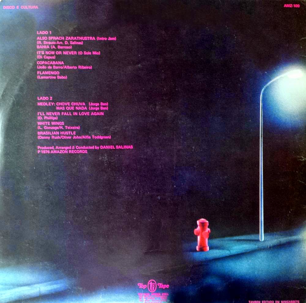 Trago para este sábado um disquinho curioso. Comprei este lp há alguns anos atrás. Achei a capa interessante, pensei até se tratar de uma banda de rock, daquelas obscuras dos anos 70. Levei o disco sem olhar muito, afinal haviam outros na compra e como estava barato, foi na leva. Só alguns dias depois foi que eu vim a conhecê-lo realmente. De saída fui logo percebendo que não se tratava de rock e sim de algo no gênero ‘disco music’. E para a minha surpresa o tal Alice Street Band era conduzido por Daniel Salinas. Quer dizer, trata-se de um trabalho do eclético maestro Daniel Alberto Salinas, produzido, arranjado e tocado por ele. Eu já cheguei a postar aqui outro disco dele, o “Paz, Amor e… Samba”, de 1972. Salinas foi um maestro e arranjador muito atuante nos anos 60 e 70, trabalhando com artistas da Jovem Guarda e tantos outros dos mais variados gêneros nas décadas seguintes. Agora voltamos com este, da era ‘discoteca’. Naquele estilo inconfundível da música americana da segunda metade dos anos 70, quando a ‘disco music’ tomou conta do pedaço. Lembram aquelas músicas de aberturas em seriados tipo ‘As Panteras’, ‘Casal 20’, ‘Chips’… é por aí… Lembra também, inevitavelmente, o Eumir Deodato, principalmente na música de abertura, ‘Also Sprach Zarathustra’ em fusão com ‘Bahia’, clássico de Ary Barroso. Salinas mostra em seus arranjos que não fica por menos, apresentando um trabalho de primeira linha. Tenho certeza de que se algum desavisado ouvir este álbum é capaz de dizer que é coisa de gringo, estrangeiro. E tem tudo a ver, não só pela qualidade dos arranjos e execução. Um trabalho bacana, digno de muitos toques musicais. Pessoalmente, nunca fui muito fã do estilo, mas hoje, sou capaz de ouvir e dizer, realmente foi um trabalho bem feito. Fiquei pensando de onde foi que o Salinas tirou esse nome de ‘Alice Street Gang’. Desconfio que trata-se do endereço do estúdio da Amazon Records, na Rua Alice, do bairro das Laranjeiras, Rio de Janeiro, onde a gang tocou. Tá no selo… 🙂