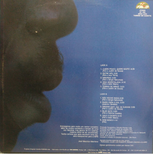 Eu queria ter preparado uma seleção especial para vocês, mas, realmente, não deu mesmo. Felizmente eu já tinha engatilhado o ‘plano B’ e é com ele que nós vamos hoje, ok? Temos aqui um álbum promocional do selo Pointer, uma editora criada pelo empresário gaúcho, José Maurício Machline, que lançou nos anos 80 uma série de discos interessantes com um variado e seleto grupo de artistas da música popular brasileira. Entre esses artistas aparecem quatro nomes distintos: Márcia, Filó Machado, Rosa Maria e Lazzo Matumbi. Juntos eles compõem este álbum, distribuído apenas para promoção. Eu suponho que esta capa, seja na verdade um encarte interno de uma coisa maior, uma caixa com mais discos e também com outros artistas do selo. Não encontrei nada na rede que fale sobre isso ou mesmo sobre o disco. O álbum tem o curioso nome de “Antes do sucesso…”, por certo se referindo, paradoxalmente, ao sucesso que esses artistas viriam a fazer com seus respectivos discos pelo selo. Temos apenas oito músicas, mas isso é só por falta de espaço no vinil, as faixas é que são longas. Taí, um pequeno mostruário que vale a pena conhecer 😉 Se aparecerem outros, imediatamente eu publico para vocês, ok?