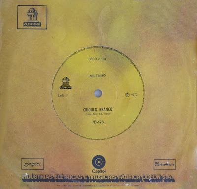 Para não ficarmos apenas em um simples compacto, aqui vai mais um que também fala da Independência. Trago para vocês este compacto, gravado pelo Miltinho em 72. Nele encontramos a “Marcha do Sesquicentenário da Indepêndencia, composição de Miguel Gustavo que se tornou bastante conhecida. Do outro lado temos o samba, “Crioulo branco”. Eu suponho que essas duas músicas só saíram mesmo no compacto. Por isso é que a gente deve estar sempre atento aos disquinhos de 7 polegadas, as vezes o que sai neles, não aparece nos álbuns.