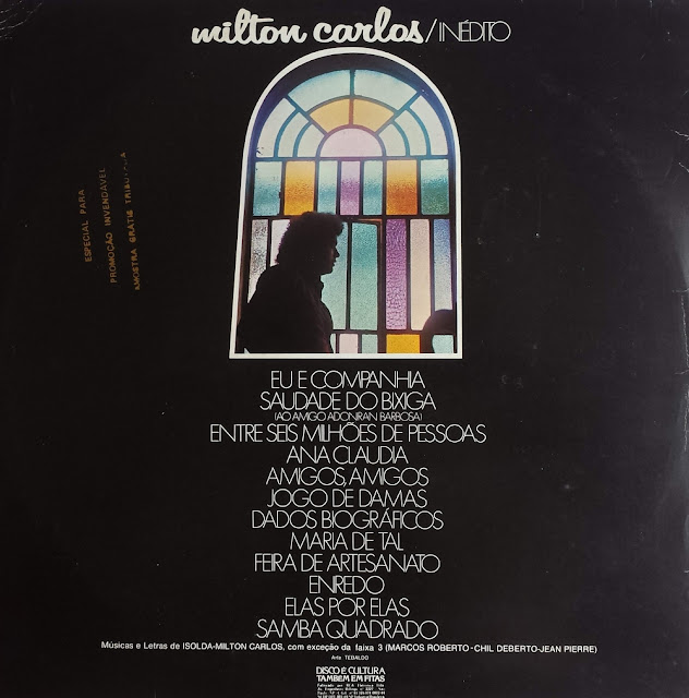 “Samba quadrado” foi outro grande sucesso da dupla que, pelo que entendi, foi lançado em 1973. Porém este álbum, onde a música dá nome ao disco, é de 1975. Datas a parte, na minha modesta opinião, este foi o melhor disco de Milton Carlos. Confiram, pois vale a pena!