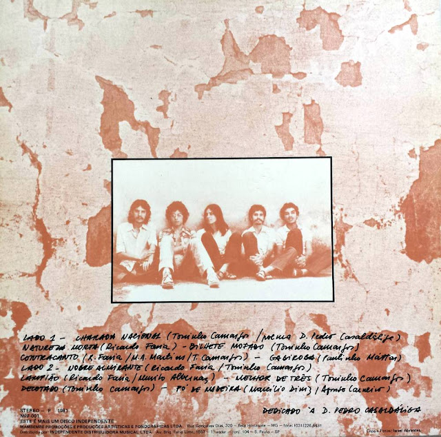 Olá amigos cultos e ocultos! Tenho hoje para vocês um disco muito bacana, produção independente feita aqui nas Geraes. Trata-se do primeiro e único disco do grupo Mambembe, formado em Belo Horizonte, em 1974. Durante os anos 70 o Mambembe participou dos mais importantes eventos, festivais e projetos musicais de Minas, entre eles o “Travessia – O canto dos mineiros”, que foi um trabalho coletivo reunindo vários artistas da terra em um disco e show no Palácio das Artes. Este lp, por sinal, já foi postado aqui no Toque Musical. O grupo era formado por Cadinho Faria, Murilo Albernaz, Toninho Camargos, Miguel Queiroz, Cláudia Sampaio, Rogério Leonel, Lina Amaral, Aldo Fernandes, Edson Aquino, Antônio Martins e Ana Iris Teixeira. Essa última viria mais tarde seguir em carreira solo com o nome de Titane. Em 1981 eles finalmente tiveram a chance de produzir e lançar este lp independente. Um disco muito bem elaborado, tanto na parte musical, quanto na parte gráfica. Quando gravaram este lp o grupo já estava reduzido a cinco membros. Este disco hoje se tornou objeto de desejo de muitos colecionadores, principalmente europeus e japoneses. Só neste ano eu vendi 4 dos seis que eu arrematei de um estoque de loja, ainda nos anos 90. Se soubesse quanto valeria este disco hoje, teria levado os que sobraram.
