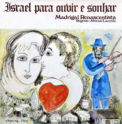 O Madrigal Renascentista é um grupo coral surgido em Belo Horizonte na segunda metade da década de 50. Ele foi formado, inicialmente, por um pequeno grupo de estudantes de música liderados pelo então jovem regente Isaac Karabtchevsky. Seu objetivo era a música feita para coro ‘a capella’, ou seja uma música exclusivamente para vozes. Num primeiro momento, o grupo estava interessado em interpretar canções concebidas na Renascença. Nomes como Claude Janécquin, Orlando di Lassus, Giovanni Perluigi da Palestrina e Cláudio Monteverdi, passaram a ser redescobertos e apresentados ao público. O grupo tomou corpo a partir dos primeiros ensaios na casa do Maestro Carlos Alberto Pinto Fonseca e em seguida na residência da família da cantora/solista Maria Lúcia Godoy, que também participava do coral. A primeira apresentação do Madrigal aconteceu em 1956, em Belo Horizonte. No repertório, além da música renascentista havia também peças do folclore brasilerio. Esta apresentação, de muito sucesso, institucionalizou de vez o Madrigal Renascentista como uma sociedade artística, garantindo-lhes o apoio inclusive do Presidênte JK. Graças a este, o coro fez sua primeira turnê internacional em diversos países da Europa. Jucelino também deu uma força, levando o Madrigal para cantar na inauguração da nova capital federal. Daí em diante o coro foi a cada dia conquistando palcos, públicos e boas críticas, nacionais e internacionais. Continuam ainda hoje super atuantes e cada vez mais reconhecidos com um dos mais importantes grupos corais do mundo (vejam o site). Ao longo de todo esse tempo gravaram diversos discos. Entre eles o álbum “Israel para ouvir e sonhar”, gravado no Estúdio Bemol, em 1978. O disco foi idealizado em homenagem aos 30 anos do Estado de Israel. Nele encontramos versões em português de uma série de músicas tradicionais do folclore judaico. Essas versões foram feitas pelo ator e poeta Salomão Zylbersztajn. A regência é do Maestro Afrânio Lacerda. Para completar o belo trabalho fonográfico, temos a capa com desenhos do artista plástico Chanina.