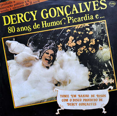 Aqui vamos nós com outro disco de humor. Desta vez não é musical, vamos com a Dercy Gonçalves, essa curiosa figurinha secular. Uma atriz e comediante que todos nós já conhecemos bem. Em 1987, comemorando os seus 80 anos, ela apresentou um espetáculo na boate Sambão & Sinhá, dirigido por Maurício Sherman. O show é um monólogo pautado no improviso, rico em palavrões, que nossas vovós não ousariam nunca pronunciar, muito menos ouvir. Dercy, a medida em que ia ficando mais velha, foi ficando também mais desbocada. Não tinha mais papas na língua, uma autêntica ‘língua de trapo’. Acredito que a Dercy Gonçalves chegou num ponto em que misturava Activia com John Walker, estava cagando e andando para tudo. (putz! já estou eu assimilando o espírito da dona…) Mas contam aqueles que a conheceram de perto, que ser desbocada era apenas um tipo, na vida real ela era mais contida. Será? O certo é que realmente não tem como a gente não dar umas boas gargalhadas com Dercy Gonçalves. Ela tem o dom de barbarizar sem chocar ou ofender. Confiram…