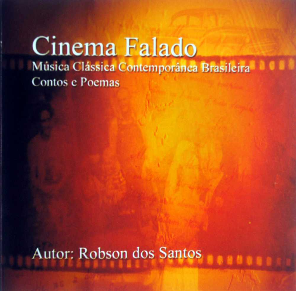 Olá amigos! Hoje a minha sexta feira está daquele jeito… uma correria só. Eu havia até pensado em deixar a postagem para o fim do dia, pois não tive tempo de preparar (mantendo a sequência) um disco de poesia e que também fosse independente. Vim para o trabalho já com a ideia de fazer tudo a noite, quando eu voltasse. Coincidentemente, deparei com um cd colocado no meu escaninho. Alguém que ainda não sei quem, deixou o presentinho lá para mim. Parece até que estavam lendo o meu pensamento, pois o tal disquinho é também de poesia, creio eu. Ainda não tive tempo de ouví-lo, apenas passei cada faixa para sentir qual é a do nosso artista, chamado Robson dos Santos. De acordo com o encarte, Robson é músico, compositor e restaurador de instrumentos musicais. É mineiro, de Belo Horizonte (Preciso localizar esse cara. Será que ele conserta a minha viola?) . Iniciou seus estudos musicais nos anos 80, na Fundação Clóvis Salgado, sendo aluno do professor Juvenal Dias. Suas composições tem sido apresentadas em diversos e importantes festivais de música contemporânea da cidade. Já tem outro disco gravado e pelo que eu entendi, na mesma linha deste, ou seja, composições eruditas, música contemporânea clássica. Neste cd, que não consta a data, intitulado “Cinema Falado”, temos não apenas música, mas também contos e poesia. Acho que este disco veio mesmo a calhar. Só falta a gente conferir. Vamos lá? 😉