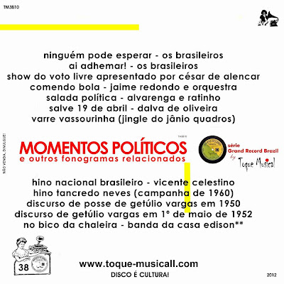 Enfim, esta é mais uma edição histórica do GRB, constituindo autêntica crônica lítero-musical de nossa história política.