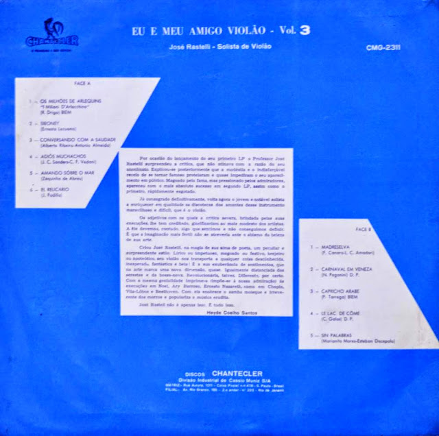 Muitos se lembram com saudade, inclusive eu próprio, do palhaço Arrelia, aliás, Waldemar Seyssel (Jaguariaíva, PR, 1905-São Paulo, 2005). Ele começou a atuar no circo aos seis meses de idade, e não parou mais. Veio de uma família circense tradicional, cujo avô, Júlio Seyssel, era nascido e residente na França, tendo sido até mesmo professor da famosa Universidade de Sorbonne. Nessa ocasião, Júlio conheceu uma jovem espanhola, artista de circo, claro, que fazia acrobacias em cima de um cavalo. Os dois se casaram, e Júlio trocou a universidade pelo picadeiro. O casal veio ao Brasil durante uma temporada do Grande Circo Inglês, dos irmãos Charles, e resolveu ficar por aqui mesmo. Já Arrelia (apelido que lhe foi dado por seu tio, Henrique)começou no circo saltando, passando depois pelo trapézio, cama elástica e outras acrobacias. Quando seu pai, cansado, deixou o picadeiro, passou a dedicar-se à arte de divertir o público. Seu primeiro parceiro foi o ator Feliz Batista, que fazia o palhaço de cara branca, vindo depois o irmão, Henrique Sobrinho. Após anos de trabalho no picadeiro, Arrelia troca o circo pela televisão, por questões financeiras. Seu “Circo do Arrelia”, iniciado em 1953, passou pela TV Paulista (hoje Globo) e pela Record, e é aí que surge seu parceiro mais famoso: seu sobrinho Walter Seyssel, o Pimentinha (Juiz de Fora, MG, 1926-Itu, SP, 1992). É com ele que Arrelia interpreta as faixas escaladas para esta edição do GRB. Para começar, a marchinha “Muito bem (Como vai?)”, utilizando um bordão famoso do grande Arrelia: “Como vai, como vai, vai, vai? Muito bem, muito bem, bem, bem!” O próprio Arrelia, mais Manoel Ferreira e Antônio Mojica, transformam esse bordão clássico em marchinha de sucesso no carnaval de 1957, lançada pela Copacabana em seu selo Carnaval, com o número 051-A, matriz M-1831. Um ano mais tarde, em janeiro de 1958, a Copacabana lança para a folia desse ano outra marchinha por eles interpretada: “Hom’essa!”, do próprio Arrelia e José Saccomani, matriz M-2075, curiosamente em dois 78 rpm diferentes: 5855 e 5861, ambos no lado A! Temos ainda outros registros do Pimentinha em dueto: com Déo Maia (cantora e atriz que foi professora primária antes de se dedicar ao teatro de revista), ele canta o samba ‘Dengo”, de autoria do mestre Ary Barroso, gravação Odeon de 3 de junho de 1953, lançada em agosto seguinte com o n.o 13483-B, matriz 9747. Ainda com o tiozão Arrelia, ele interpreta outra marchinha, “Cacho de banana”, do próprio Arrelia mais José Saccomani e Ercílio Consoni, para o carnaval de 1958, e que a Copacabana lança em janeiro desse ano também em dois 78 rpm diferentes: 5855-B, e 5862-A, com a mesmíssima matriz, M-2094! Como solista, Pimentinha interpreta outra marchinha, por ele próprio assinada em parceria com José & Emílio Saccomani: “Na bodega”, para o carnaval de 1960, editada pela mesma Copacabana ainda em dezembro de 59 com o n.o 6067-B, matriz M-2548. Déo Maia ainda canta com ele o choro “Vou a Paris”, de Vicente Paiva e Luiz Peixoto, lado A do 78 de “Dengo”, o Odeon 13483, matriz 9745, e obviamente registrado na mesma sessão. Encerrando sua participação neste volume, Pimentinha canta a “Marcha do Cacareco”,de Elzo Augusto, Edaor e Romaris, lançada pela Copacabana no lado A de “Na bodega”, matriz M-2547, para o carnaval de 1960. O Cacareco em questão é um rinoceronte que foi trazido do Jardim Zoológico do Rio de Janeiro para o de São Paulo, e houve uma polêmica generalizada na época sobre se ele deveria permanecer em Sampa ou voltar pro Rio. Enquanto isso, nas eleições de 1959, os paulistanos, decepcionados com os políticos candidatos a vereadores (como até hoje), acabaram votando, em sinal de protesto, no Cacareco, que recebeu mais de 100 mil votos (todos nulos, claro), mais até que o vereador mais votado, que teve 95.000 votos! Isso aconteceria em 1978 com o jogador de futebol Biro-Biro, então no Corinthians, que mais tarde candidatou-se a vereador por São Paulo e se elegeu de verdade. Dois casos impossíveis de se repetir nestes tempos de urna eletrônica…
