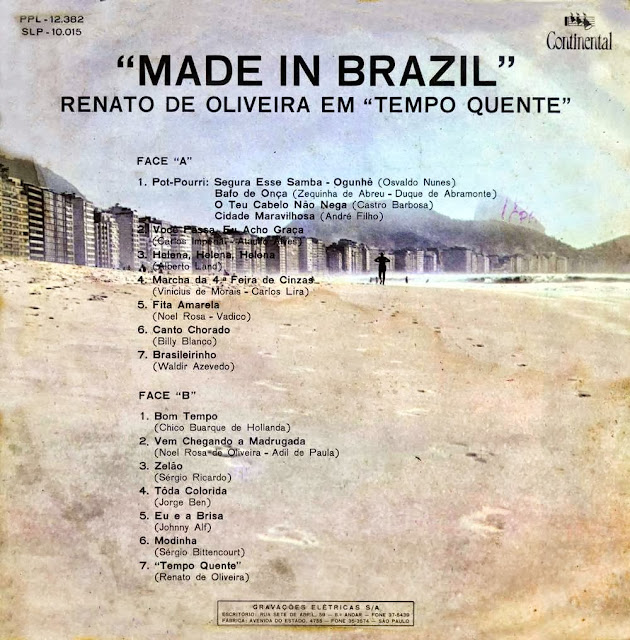 Para a noite de hoje eu estou trazendo para vocês um álbum muito interessante, bem a cara dos anos 60, ou do final dele. Temos aqui o maestro, instrumentista e compositor Renato de Oliveira, em tempo quente, desfilando um repertório “made in Brazil”. Uma seleção bem variada que trás alguns temas clássicos da nossa música popular. Na época, músicas consagradas e novos sucessos que mais tarde também se tornariam outros clássicos. Renato de Oliveira é mesmo um mestre e demonstra isso em arranjos surpreendentes que dão a essas músicas uma nova roupagem. Muito bom!