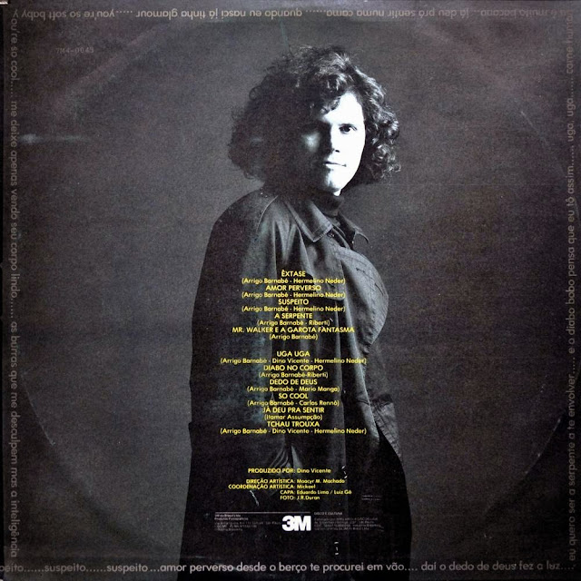 Vamos com o Arrigo Barnabé em seu álbum de 1987, lançado pelo selo 3M. “Suspeito”é um álbum suspeitamente romântico. Uma fase em que o artista devia estar vivendo altas paixões em sua vida. Ou seriam os seus parceiros? Eu imagino que em parcerias o Arrigo se dedica mais à música do que a letra. Mesmo assim, fica clara a sua intenção de fazer um disco em que o foco é o amor, as relações amorosas e coisa e tal… Pessoalmente, eu gosto tanto das músicas, quanto das letras. Porém esse uso de teclados sintentizados, muito comum nos anos 80, mata qualquer música. Já falei disso outras vezes. O jeitão da música nos anos 80 nunca me convenceu, só na época mesmo. Mas independente do meu gosto pessoal, o trabalho tem muita qualidade, como cabe a um artista do calibre do Arrigo. Quando se faz um disco como “Clara Crocodilo”, qualquer outro que não estiver no mesmo nível pode parecer suspeito.