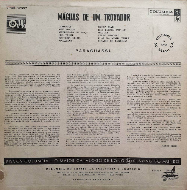 E falando em tradição, em coisas das antigas, eu trago hoje Roque Ricciardi, mais conhecido como Paraguassú, um pioneiro do rádio e da fonografia nacional. Violonista, cantor e compositor paulista, autor de toadas clássicas da música popular brasileira. Não vou entrar em muitos detalhes, pois em breve teremos aqui uma nova edição do Grand Record Brazil, trazendo o Paraguassú em uma resenha completa feita pelo nosso amigo e colaborador, Samuel Machado Filho.