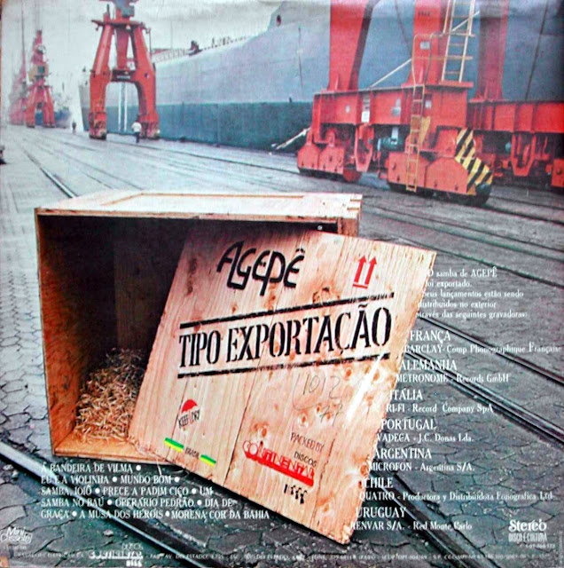 Ele se chamava Antônio Gílson Porfírio. E foi da pronúncia fonética das iniciais de seu nome que se originou o pseudônimo com o qual ele ficaria para a posteridade: Agepê. Nascido no Rio de Janeiro, a 10 de agosto de 1942, filho de uma alagoana de origem índia e de pai músico, passou a infância quase na miséria, no Morro do Juramento, Zona Norte carioca. Órfão de pai ainda menino, foi à luta para ajudar a mãe faxineira. Aos 18 anos, enquanto prestava serviço militar na Aeronáutica, arregimentou uma gangue e fugia sistematicamente do quartel para namorar. Acabou sendo inevitavelmente expulso da corporação… Como integrante da ala de compositores da Escola de Samba Portela, Agepê era uma espécie de ídolo de plantão, e estava sempre presente nos ensaios e desfiles da “azul e branco”. Antes de conquistar a almejada fama, trabalhou como transportador de bagagens, sendo conhecido, nesse tempo, como Ripinha, office-boy da Embaixada da Alemanha no Rio de Janeiro e técnico-projetista da extinta Telerj (Telecomunicações do Rio de Janeiro), ofício que abandonou para seguir a carreira artístico-musical. Em 1975, Agepê consegue seu primeiro êxito logo no primeiro compacto simples, pela Continental, com “Moro onde não mora ninguém”, que fez junto com Canário, seu mais constante parceiro, e que daria título a seu primeiro LP. Esse foi o pontapé inicial para uma trajetória repleta de sucessos, tais como “Todo prosa”, “Sete domingos”, “Moça criança”, “Menina de cabelos longos”, “A dança do meu lugar”, “Ela não gosta de mim”, “Deixa eu te amar” (talvez o maior de todos), “Me leva”, “Lá vem o trem” etc., conquistando um público cada vez mais fiel. Seu eclético repertório, além de sambas, tinha também ritmos nordestinos, em especial o baião. Apresentando-se em impecáveis ternos de cetim branco e sapatos de cromo da mesma cor, Agepê era o símbolo do som romântico, que às vezes até beirava a sensualidade. Humilde, creditava seu sucesso ao fato de já ter vivido “de A a Z”, e, por isso, saber a linguagem do povo. Também obteve êxito com sua regravação de “Cama e mesa”, de Roberto & Erasmo Carlos, em 1992. Agepê faleceu no dia 30 de agosto de 1995, aos 53 anos, em seu Rio de Janeiro natal, vitimado por cirrose alcoólica, deixando uma discografia de quinze álbuns de carreira (o último deles, “Feliz da vida”, foi lançado um ano antes de sua morte, em 1994), e alguns compactos. Dela, o Toque Musical oferece hoje, a seus amigos cultos, ocultos e associados, o terceiro LP, “Tipo exportação”, lançado em 1978 pela Continental. Aqui, ele conta com músicos de primeiro time, a começar pelo arranjador e regente, Waltel Branco, o acordeonista Sivuca, o gaitista Maurício Einhorn, o violonista Horondino Silva, o Dino Sete Cordas, o baterista Picolé, os percussionistas Chico Batera, Mestre Marçal e Pedro Sorongo, o tecladista Lincoln Olivetti, etc. No coro, a curiosidade vai para a presença de Roberto Quartin, proprietário, nos anos 1960, da gravadora Forma, que produzia MPB de alta qualidade e era fã incondicional de Frank Sinatra, chegando a ter um completíssimo acervo a respeito do cantor norte-americano, inclusive com registros sonoros inéditos em disco. O próprio Agepê e seu inseparável parceiro Canário assinam cinco músicas deste trabalho, entre elas “Operário Pedrão” (o título talvez seja referência ao concurso Operário Padrão, durante anos promovido pelo Sesi em parceria com o jornal carioca “O Globo”), “A musa dos heróis” e “Dia de graça”. Marcam também presença neste primoroso trabalho composições de Ary do Cavaco (“Prece a Padim Ciço”), das duplas Romildo Bastos-Toninho Nascimento (“Morena da cor da Bahia”) e Wilson Moreira-Ney Lopes (“Samba Ioiô”). Enfim, um trabalho musical da mais alta qualidade técnica e artística, que o TM tem a grata satisfação de oferecer. Dá pra pedir mais?